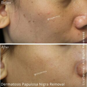 DPN removal is a quick and straightforward procedure performed at LiLyDermis. Most sessions take 30-60 minutes, depending on the number of lesions being treated. After the procedure, you may experience mild redness or scabbing, which typically resolves within 7-10 days, revealing smoother, clearer skin. We provide aftercare guidance to ensure optimal healing and long-lasting results.