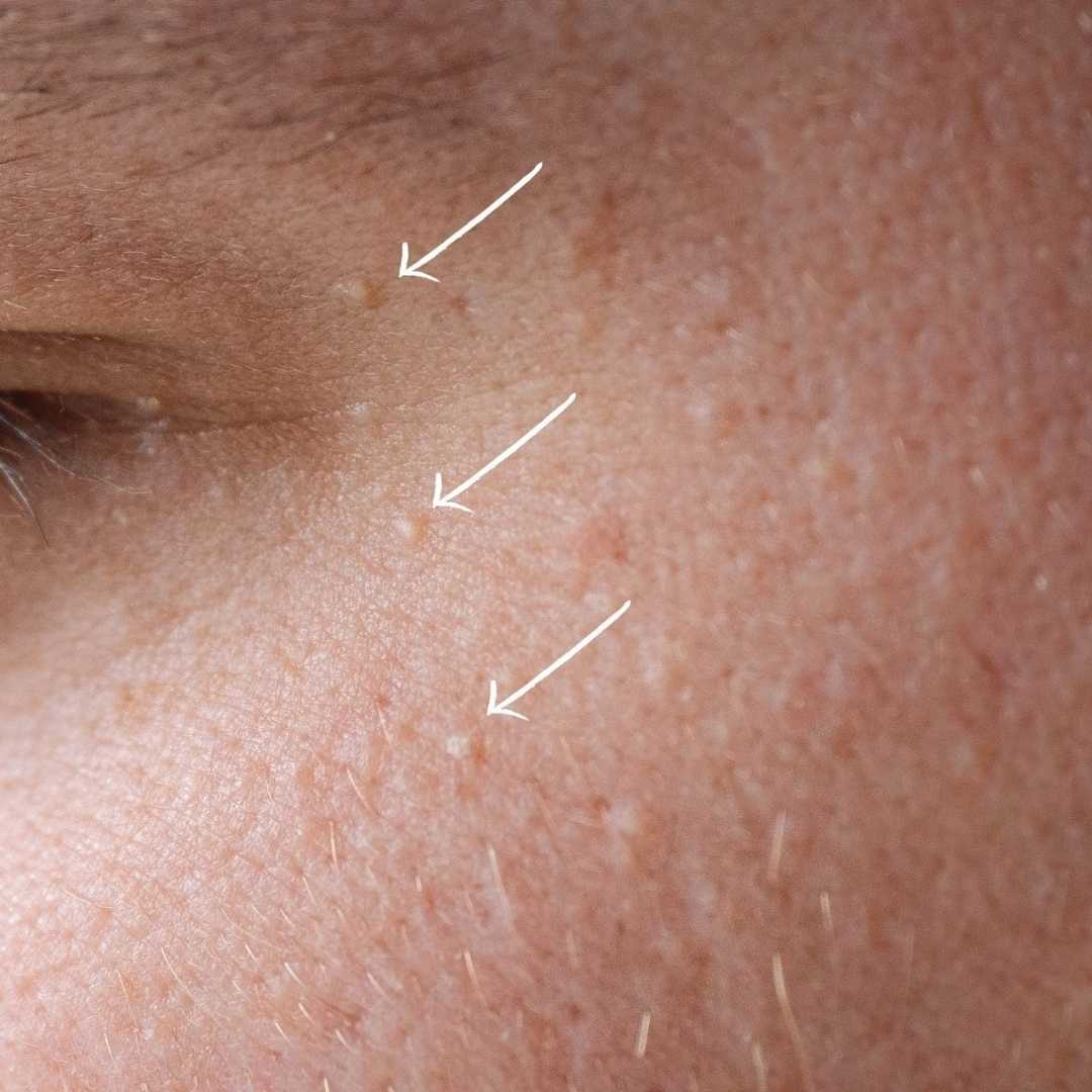 Milia are small, white or yellowish bumps that often appear in clusters. They are not acne and don’t cause pain or inflammation, but many people choose to remove them for cosmetic reasons. Common causes include: